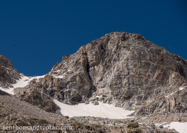 On Saturday July 13th Bobbi Clemmer and I attempted a Cloudveil Traverse, a classic seven peak link up following the skyline ridge connecting the South Teton to Nez Perce. Due to a few unexpected steep snow crossings and a critical route finding mistake by your's truly we were forced to retreat 150 feet from the summit of the final peak.