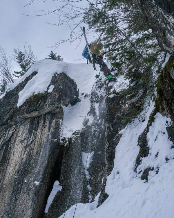 My second ski descent, first published on 10K2Far, of a unique, seldom skied, 2,500 foot fall-line adventure on the rugged north face of Treasure Mountain, involving a little rope work, with new partner Hayden Evans.