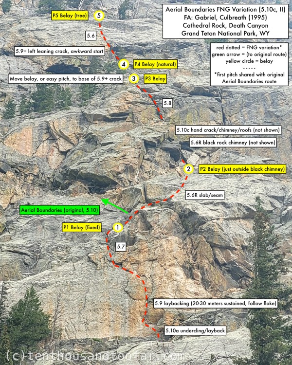 Breaking Barriers – Aerial Boundaries, FNG Variation (5.10c, II) – Cathedral Rock – GTNP, WY (09.02.23)